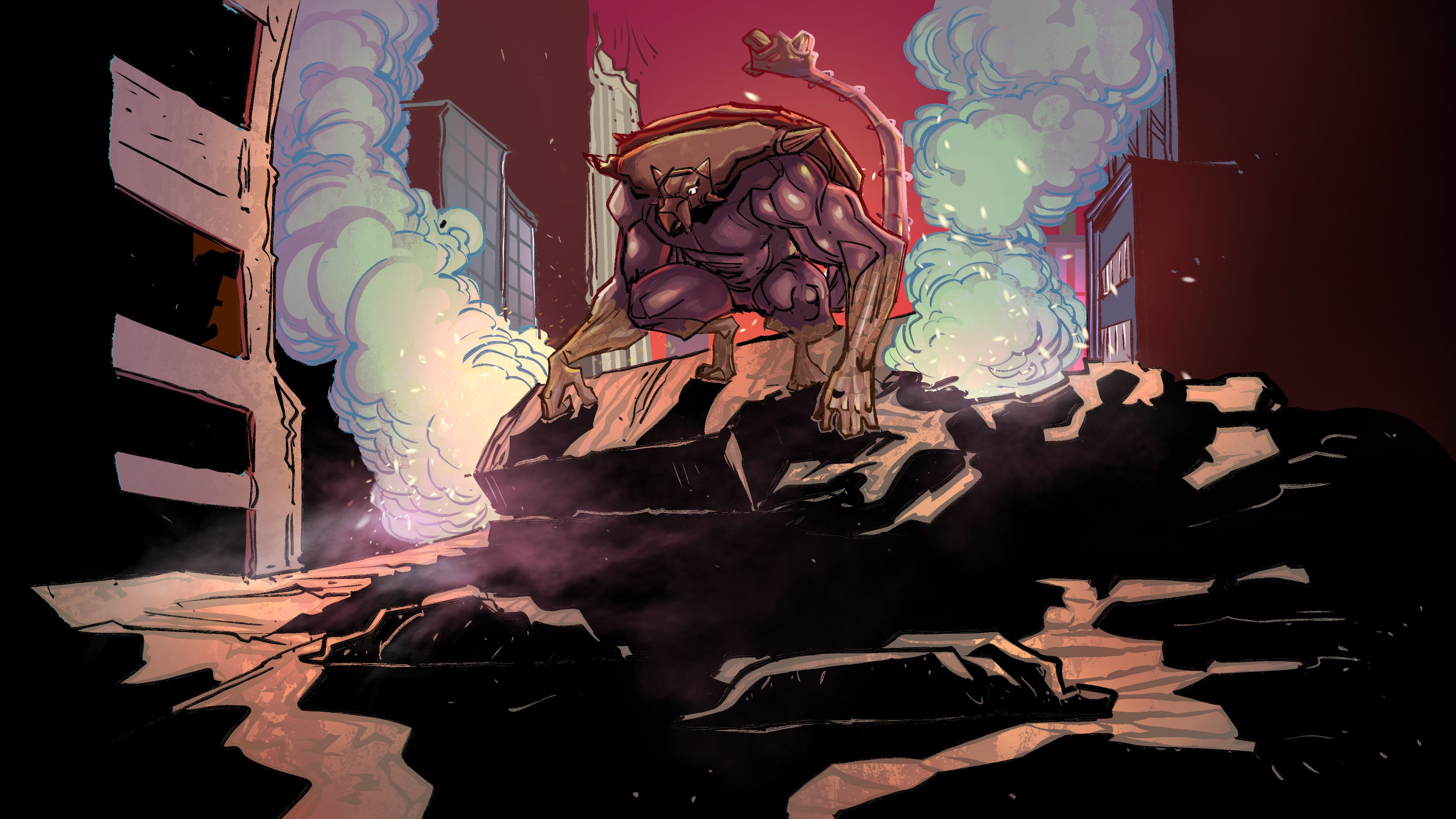 The series will be an ongoing series that will jump back and forth between past and present timelines exploring the origins of the monsters and how they fit into a world that grows up with them. My plans for this are to build up an entire world around this series and my hopes are that readers will develop favourite Kaiju, similar to Pokemon or Digimon.